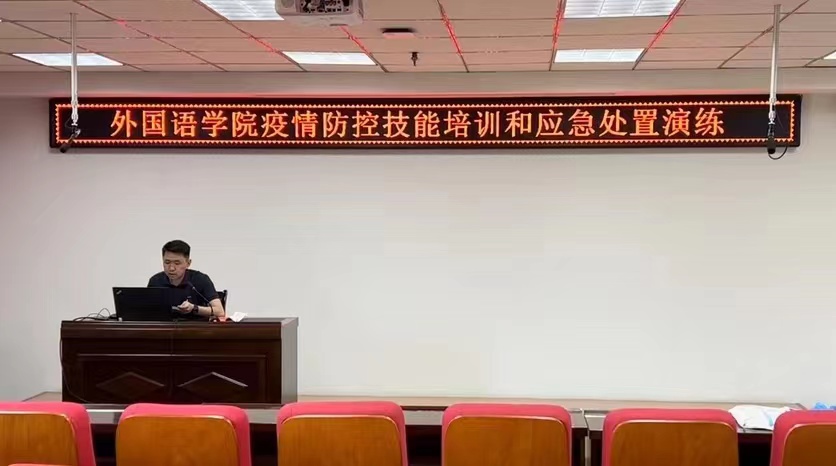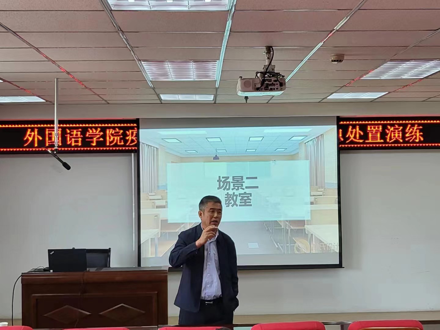 讲座后,根据学校疫情防控工作的有关要求,学院有针对性地设置了学生在宿舍晨午晚检、教室出现密切接触者、教学楼封闭及人员疏散等几个场景,在场全体教师开展了疫情防控应急处置演练。