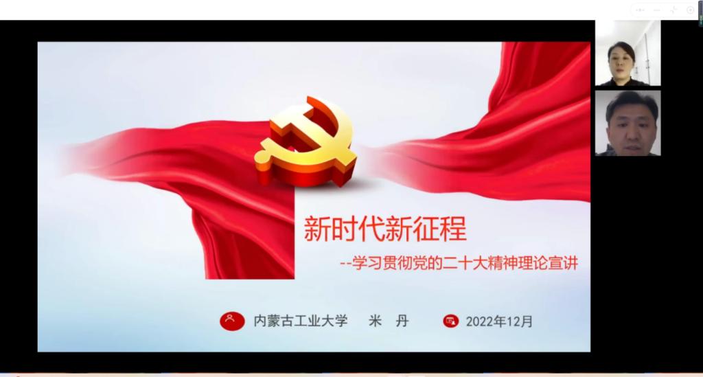 2022年12月19日江南(中国)举办“党的二十大精神宣讲进校园”学生专场线上宣讲会,学校党的二十大精神宣讲团成员、党委学生工作部副部长米丹作报告,党委副书记、副院长李育石主持会议,全体本科生、研究生800余人参会。