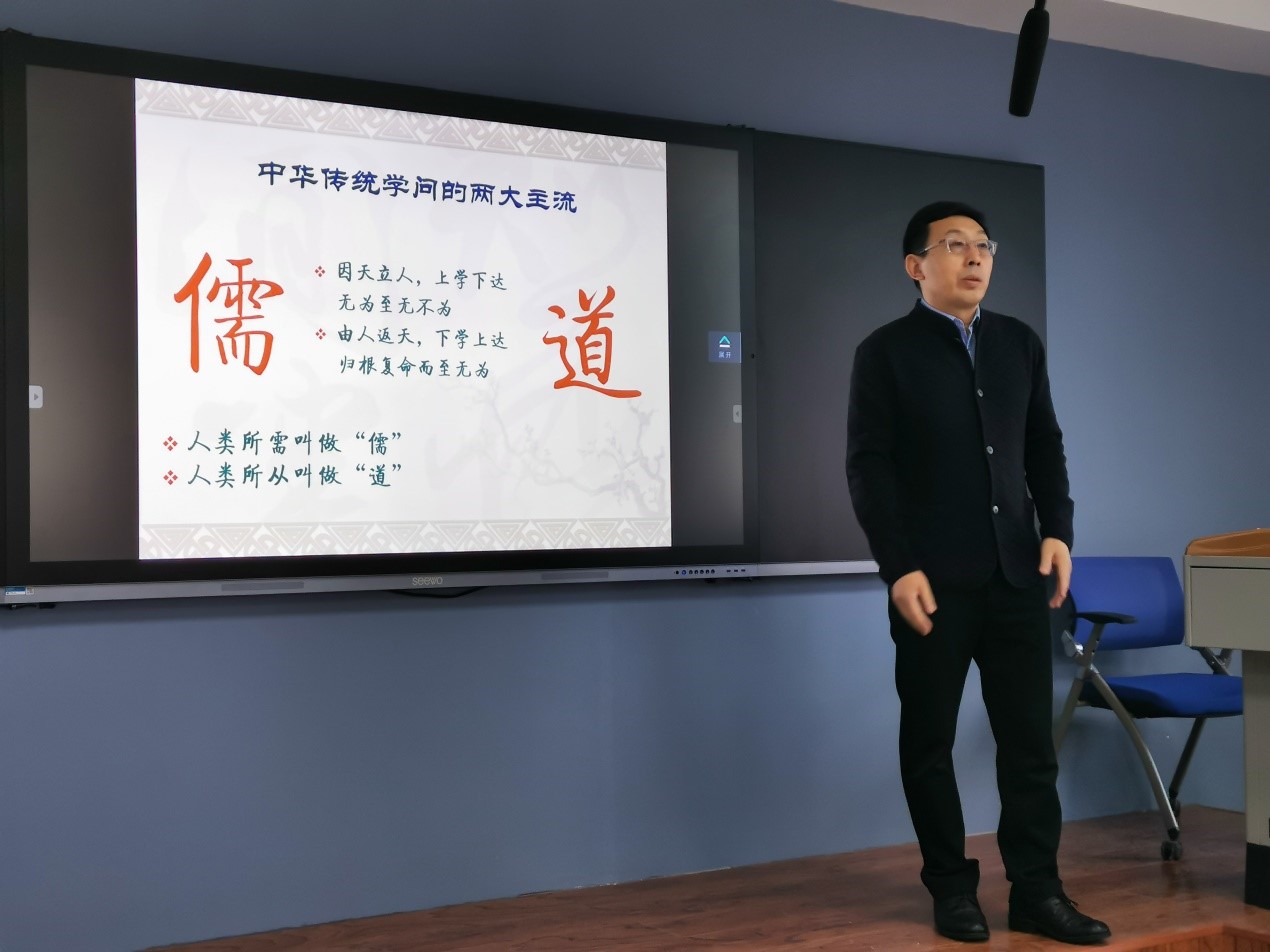 讲座分两场,围绕中华文化的日月星展开,孔子是温暖的阳光,老子是清凉的月光,庄子是冷峻的星光。中华传统文化的核心部分是儒家与道家思想,儒家是入世的学问,强调当下的担当与责任,道家注重生命与自然规律,主张无为与超脱。