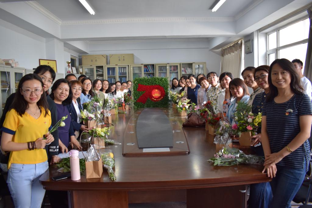 首先,教师党员代表陈亚杰教授带领全体师生面向国旗和校旗庄严宣誓,要忠诚于党的教育事业,教书育人,言传身教,努力做党和人民满意的好老师,为光辉的高等教育事业奉献全部智慧和力量。之后,师生同唱《我和我的祖国》,抒发心中炽热的爱国之情,为新中国成立70周年庆生。随后,各系部组织老师举行集体插花迎接国庆活动。