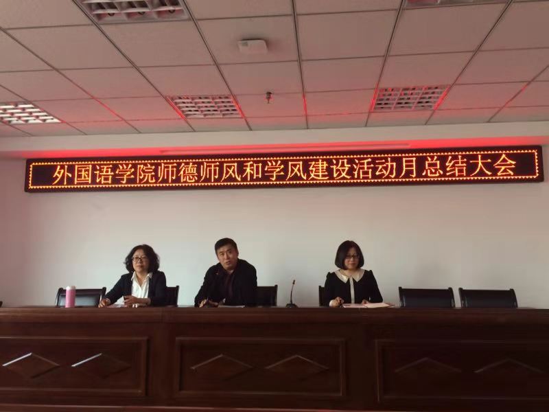 院长张红对学院第三届师德师风和学风建设活动月启动以来各项活动开展情况做了总结。她充分肯定了活动期间学院和各系部(科室)两个层面扎实组织开展的一系列形式多样、内容丰富、富有成效的建设活动。这些活动能够紧紧围绕立德树人和人才培养的根本任务,将规范师德师风和优化改进学风作为活动目标,达到了预期的目的和效果,取得了应有的成效。