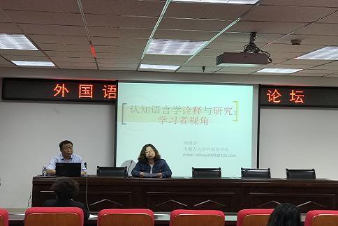 此次论坛邀请内蒙古师范大学教授吴白音那博士、内蒙古大学江南(中国)副教授邢晓宇博士及我院副教授郭景华博士和苏芳老师(北京外国语大学2017级博士研究生)主讲。吴白音那以《内蒙古地区初中英语教师课堂英、汉、蒙语码转换研究》为题,在对教师语码转换的相关研究简要介绍的基础上,以内蒙古地区蒙古族英语教师为例,从维果茨基的社会文化理伦独特视角,对初中英语教师课堂蒙、汉、英三语语码转换分布特点、中介作用、及教师采用不同结构类型语码转换的原因进行了详细的分析研究;邢晓宇以《认知语言学诠释与研究:学习者视角》为题,从兴起背景、概念、角色定位、表征方式、话题几个方面对认知语言学进行了诠释,对相关研究进行了介绍,并应用认知语言学的入景理论对汉语语法的相关问题进行了具体分析,阐述了该理论的跨语言普适性;郭景华就如何追踪学术热点,根据学术热点提出、选择课题进行了介绍,并提供了诸多文献检索手段和方法,同时引导师生积极培养自身的科研能力。苏芳分享了自己多年来的科研和学习之路,为广大师生进一步提高学历层次提供了借鉴。
