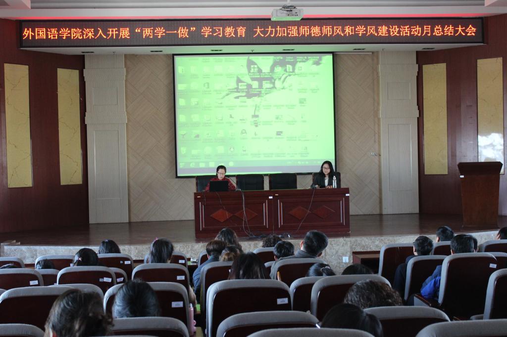 霍天瑞对“师德师风和学风建设活动月”进行了总结。他充分肯定了活动月期间学院和各系部(科室)两个层面扎实组织开展的一系列形式多样的建设活动。这些活动的开展,进一步加深了学院师生对师德师风和学风建设重要意义的认识,巩固了“两学一做”学习教育成果,达到了“以支部推动系部,以党务助推业务,以党员带动全员”的预期目标,有力推动了学院各方面的工作,取得了积极成效。霍天瑞还传达了学校八届四次教职工代表大会暨十一届四次工会会员代表大会会议精神。