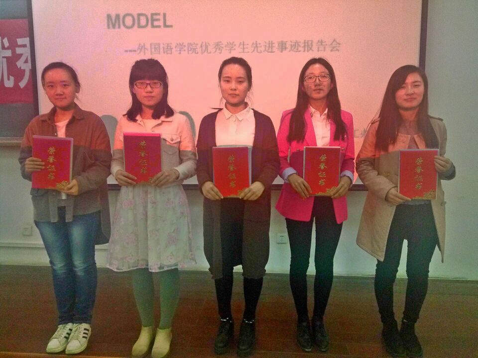 报告会上,5名报告团成员向大一的学弟学妹们讲述了自己刻苦钻研、自强不息、奋发向上的先进事迹。报告以2013级的顾丹青同学开场。顾丹青在大学期间表现突出,为院学生会成员,参加舞蹈队及话剧团,参与迎新晚会及外语节系列表演、健美操大赛、“七彩杯”演讲比赛、趣味运动会等活动。她用幽默风趣的语言讲述了自己上大学起遇到的种种挫折和打击,不过她告诉同学们,只要你相信,然后坚持下去,一切都有可能。来自2013级的庞丽静同学曾两次获得校级一等奖学金,两次获得校级二等奖学金,并获得2013-2014学年度国家励志奖学金,还被评为2013-2014学年度校级三好学生及2014-2015学年度校级优秀学生干部。她以谦虚的口吻向大家讲述了自己如何面对学习方面的困难,如何积极参与活动,并如何合理平衡学习与参与活动的关系。同样是多次获得校级以及自治区级三好学生、多次参加“学风杯”以及“外研社杯”比赛取得佳绩,现已考取雅思证书准备出国的张楚瑶同学向大家分享了两个对她来说很重要的事情,一个是外研社的演讲比赛,另外一个是考雅思出国。言语中流露出对大家的期许,希望大家可以把她所分享的故事作为一个参考,想清楚自己在大学这几年,究竟想成为一个怎样的人。如果不想在激烈的竞争中被选择、被挑剔,那么就要努力让自己变得强大。接下来是来自2012级的李佳琪同学的发言,她与同学们分享了自己如何应对自己在大学期间的种种困惑与迷茫。李佳琪荣获过校级优秀学生、校级三好学生、内蒙古自治区三好学生、内蒙古工业大学科技创新活动先进个人、全国大学生英语竞赛全国三等奖、全国大学生英语竞赛全国一等奖等奖项和荣誉。摆脱了大一的迷茫与困惑后,她开始全身心投入到学习中去,在学习之余积极参加体育锻炼、参加自己喜欢的各种英语比赛。在生活中,她喜欢把要完成的事情都用记事本记录下来,按部就班地去做。她送给所有同学一句一直激励自己的名言:在人的一生中,失败并不可怕,跌落谷底也不可怕,关键是要看你是否能够在跌落谷底的时候还有反弹的能力,还能够重新站起来,面对崭新的生活!最后,她还以一组PPT讲述了自己和同学们、舍友们的和睦相处以及大学三年经历的美好时光。李嘉琪的发言发人深省,让同学们对大学的定位有了更深层次的理解。曾获得自治区优秀学生干部、三好学生,国家励志奖学金,学院首届践行杯演讲比赛第一名,全国笔译翻译四级,厦门大学口译一级,并以高分通过大学英语四六级的2012级冯秀翠同学从就业的角度为同学们敲响了警钟,以亲身经历向大家诉说一定要有计划的生活,养成良好的习惯;她提到,机会总是留给有准备的人。