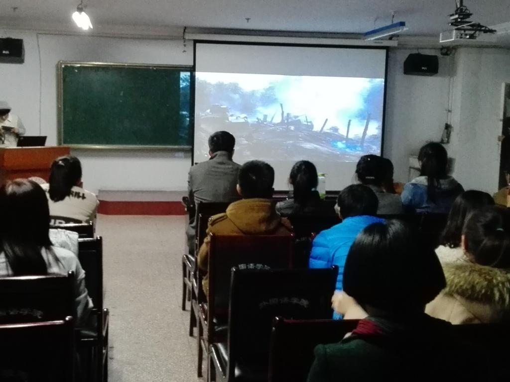 本次党日活动以观看革命题材影片形式进行,学生第一党支部书记代维东简要介绍了党支部的基本情况及今后的工作方向,说明每学期都会组织进行主题党日活动,主要采取社会实践教育、参观示范基地、观看革命题材影片等方式之后,学生第一党支部的党员及积极分子们观看了为纪念反法西斯战争胜利70周年而拍摄的电影《百团大战》。大家沉浸在精彩的影片中,被影片中共产党的坚强不屈,顽强拼搏的精神深深吸引并感受到了强烈的震撼。