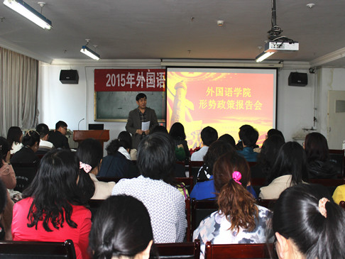 张红结合前一段时间参加全国英语教学改革与发展学术研讨会的经历,围绕如何在外语教学中恰当运用思想政治教育中的渗透原则,有效融入育人思想向与会的教师做了报告。她要求学院广大教师要以深化外语教学改革为契机,以培养和践行和社会主义核心价值观为切入点,将思想政治教育工作渗透到教学中去,融入到学生的学习和生活中去,如此才能更好地满足学生的需求,才能及时发现学生中存在的问题并解决问题,从而增强思想政治教育的针对性和时效性,促进学生的全面发展和学院各项工作正常有序地开展。