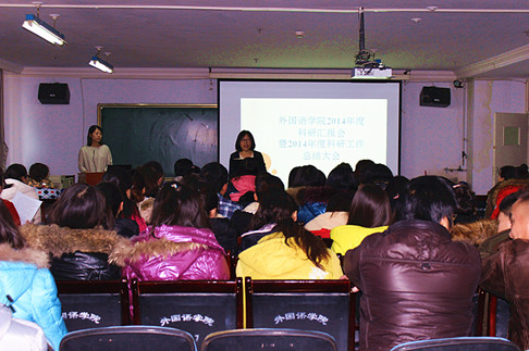 会上,董君副院长首先为师生介绍了2014年度学院各级别科研、教研项目获批情况、学院教师发表论文情况以及各级别科研、教研项目申报时间,并同时做2015年教育部人文社科、国家社科基金项目申报动员。