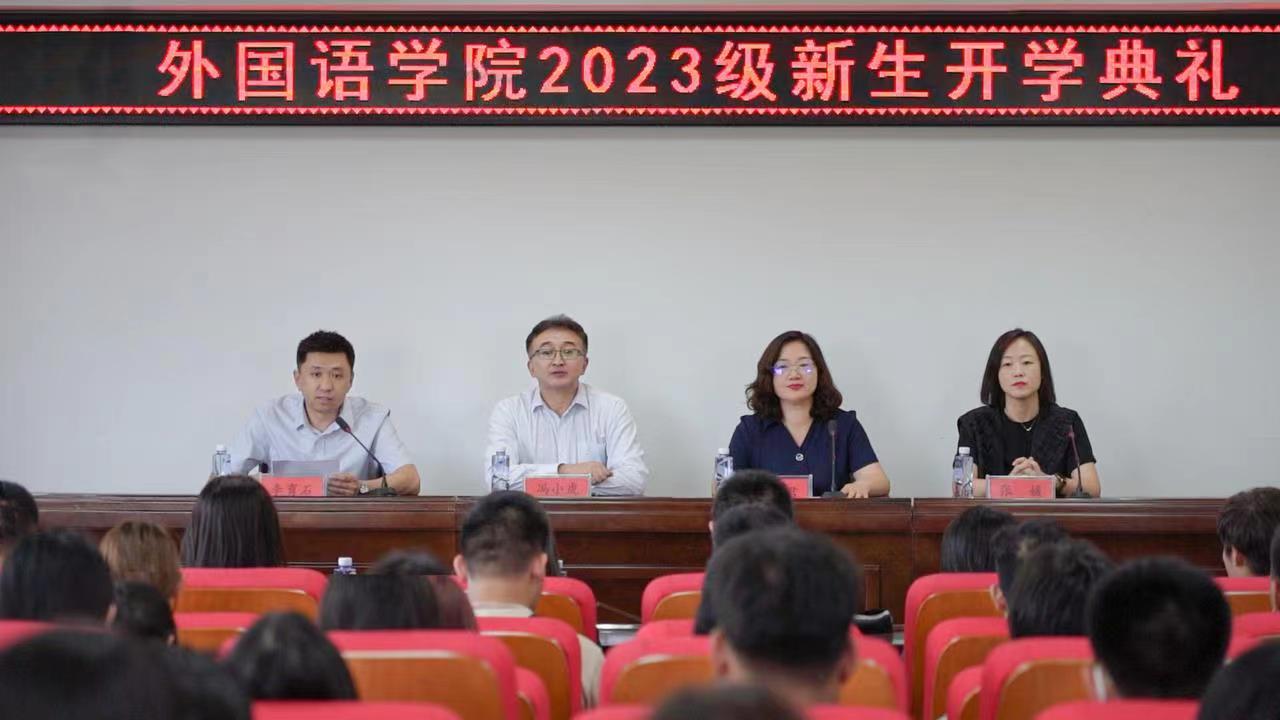 学院领导班子、外语系和各部门负责人、新生班主任以及2023级全体新生参加开学典礼。