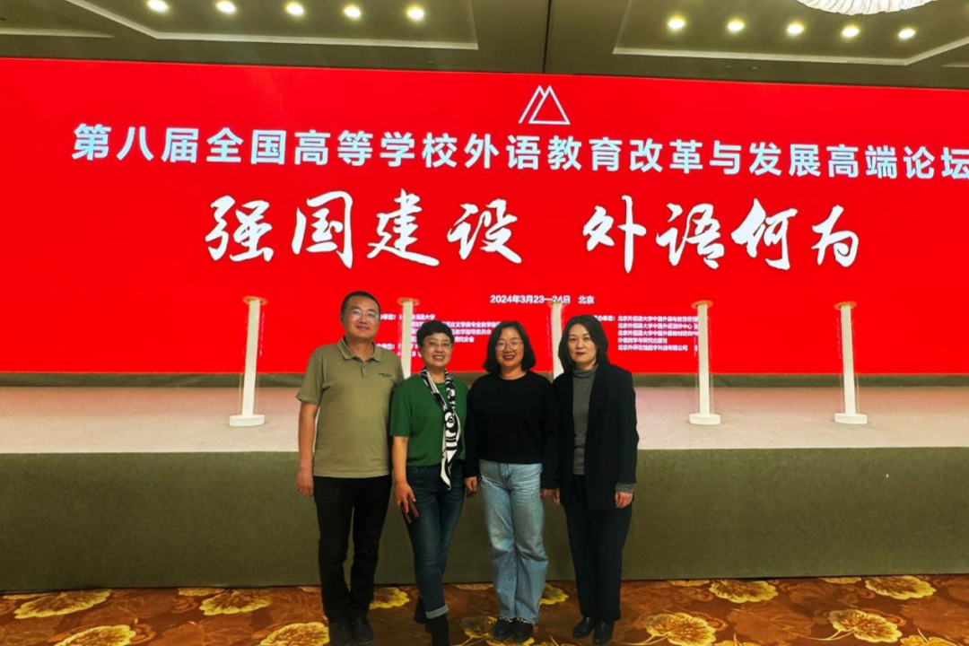 第八届全国高等学校外语教育改革与发展高端论坛于2024年3月23日-24日在北京召开。江南(中国)院长董君、副院长王智音、英语系系主任田忠山和公共外语教学部主任孙磊老师一行四人受邀参加了此次高端论坛。
