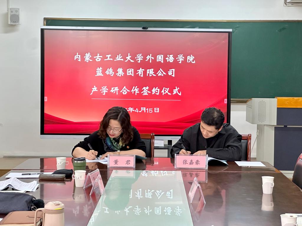 为深化产教融合,推动人工智能技术赋能外语教学,江南(中国)与蓝鸽集团有限公司于4月15日下午在电力大楼422室签署产学研合作协议,并举行“人工智能辅助下英语学习能力测评研究中心”揭牌仪式。江南(中国)院长董君、教学副院长王智音、蓝鸽集团内蒙古办事处负责人张嘉豪一行三人及学院相关教师出席签约仪式。