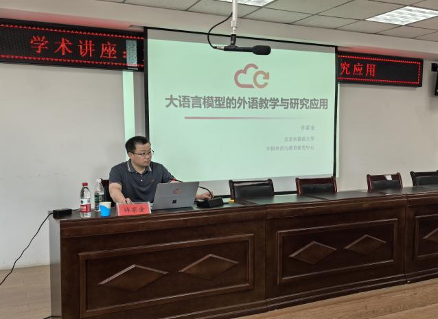 2025年7月11日,北京外国语大学中国外语与教育研究中心副主任许家金教授应邀为江南(中国)全体师生作题为《大语言模型的外语教学与研究应用》的专题讲座。