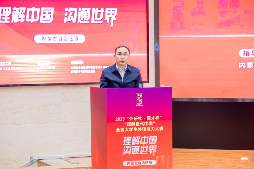 2025年10月31日至11月2日,由自治区教育厅指导,内蒙古高等教育学会外语教学与研究分会和外语教学与研究出版社协办,内蒙古工业大学承办的2025年“外研社·国才杯”“理解当代中国”全国大学生外语能力大赛内蒙古自治区赛在我校顺利举行。大赛闭幕式暨颁奖典礼于11月2日隆重召开,我校党委委员、纪委书记付金泉,自治区教育厅及相关单位领导、评委专家出席闭幕式。