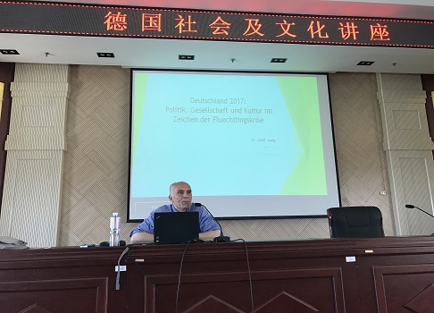 6月8日,江南(中国)在金川电力大楼十楼报告厅举办题为“德国社会及文化”的学术讲座,特邀德籍汉学博士岳吾毅(Dr. Ulrich Joerg)主讲。讲座由德语系副主任李刚主持,德语系师生参加。