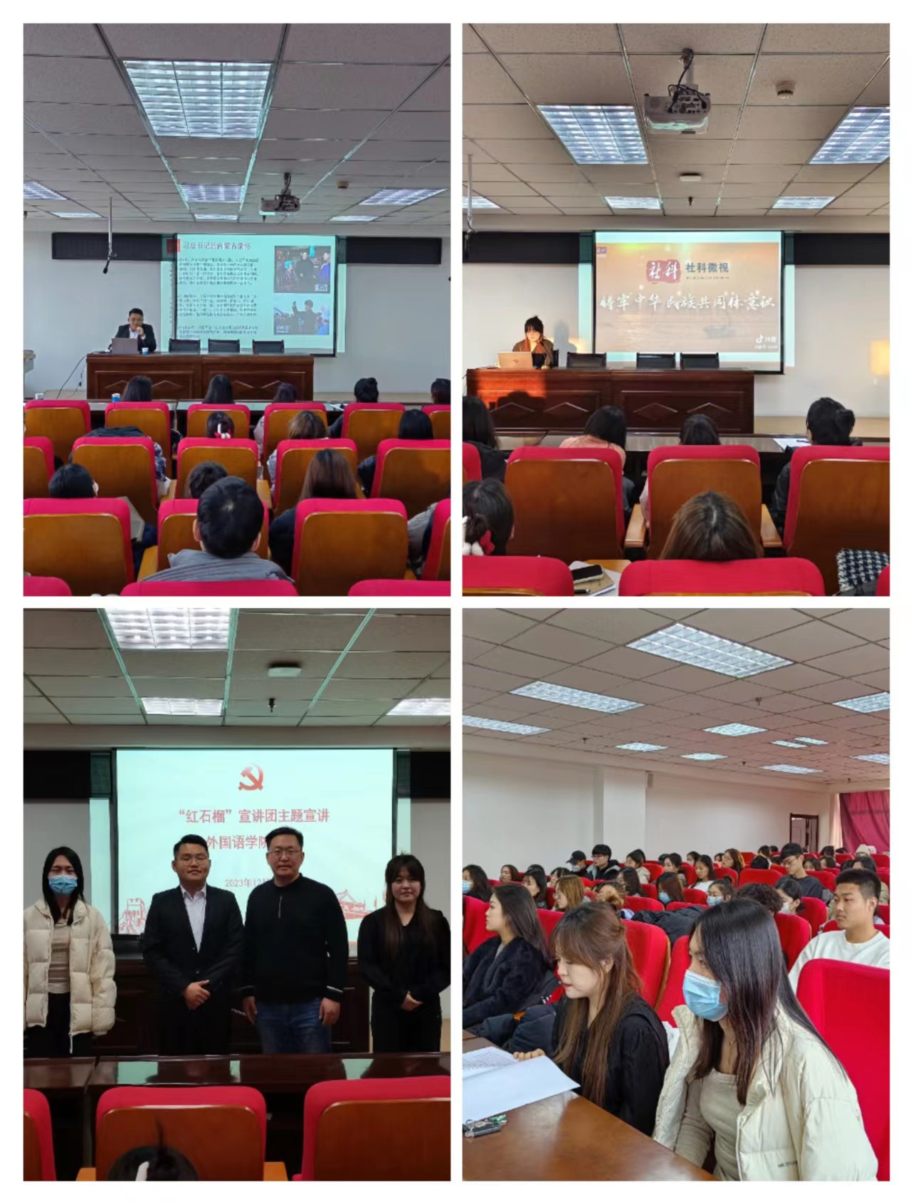 为深入学习贯彻习近平新时代中国特色社会主义思想,推动习近平总书记对内蒙古的重要指示精神落地落实,12月3日江南(中国)党委邀请“红石榴”宣讲团来院开展理论宣讲。学生党员、发展对象、积极分子九十余人参会。