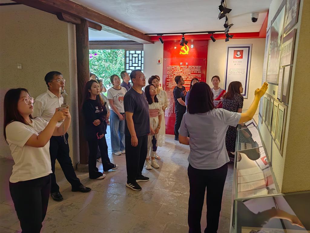 新党员首先步入展厅参观多松年烈士生平事迹展。通过各类照片、烈士遗物、珍贵手稿等,大家从不同角度对多松年的光辉事迹有了更深入地了解。