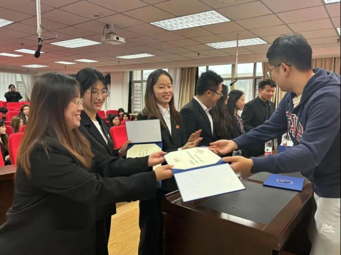 会议第四项议程,主持人宣读2024届团委学生会新任主席和部长名单,由刘永老师、赵金凤老师、义仁吉乐老师为2023届团委学生会主席、部长颁发任职聘书。