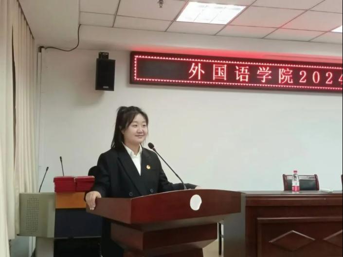 会议第三项议程,团委书记赵金凤老师发言。赵老师对2023届团委学生会的工作表示充分肯定,向在院团委学生会和各个班级默默付出的学生干部表达感谢,同时对新一届团委学生会提出几点要求,希望大家明确自身定位,紧密联系同学,提升服务意识,不断提高自身工作水平和工作能力,为广大同学提供更加优质的服务,为学院发展添砖加瓦。