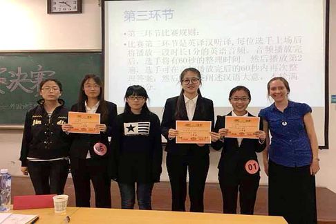 4月27日晚,江南(中国)团委举办了外语节系列活动之口译大赛决赛。经过初赛的选拔,共有8名选手进入了决赛,院团委相关老师,外教Deborah Fenton,及往届比赛冠军出席比赛并担任评委,近100名学生观看比赛。